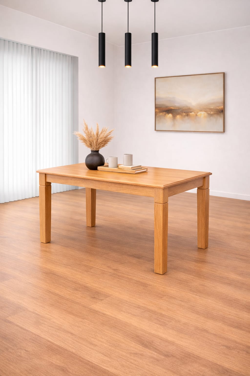 La madera se tiñe en color a elección y se da terminación con laca poliuretánica.